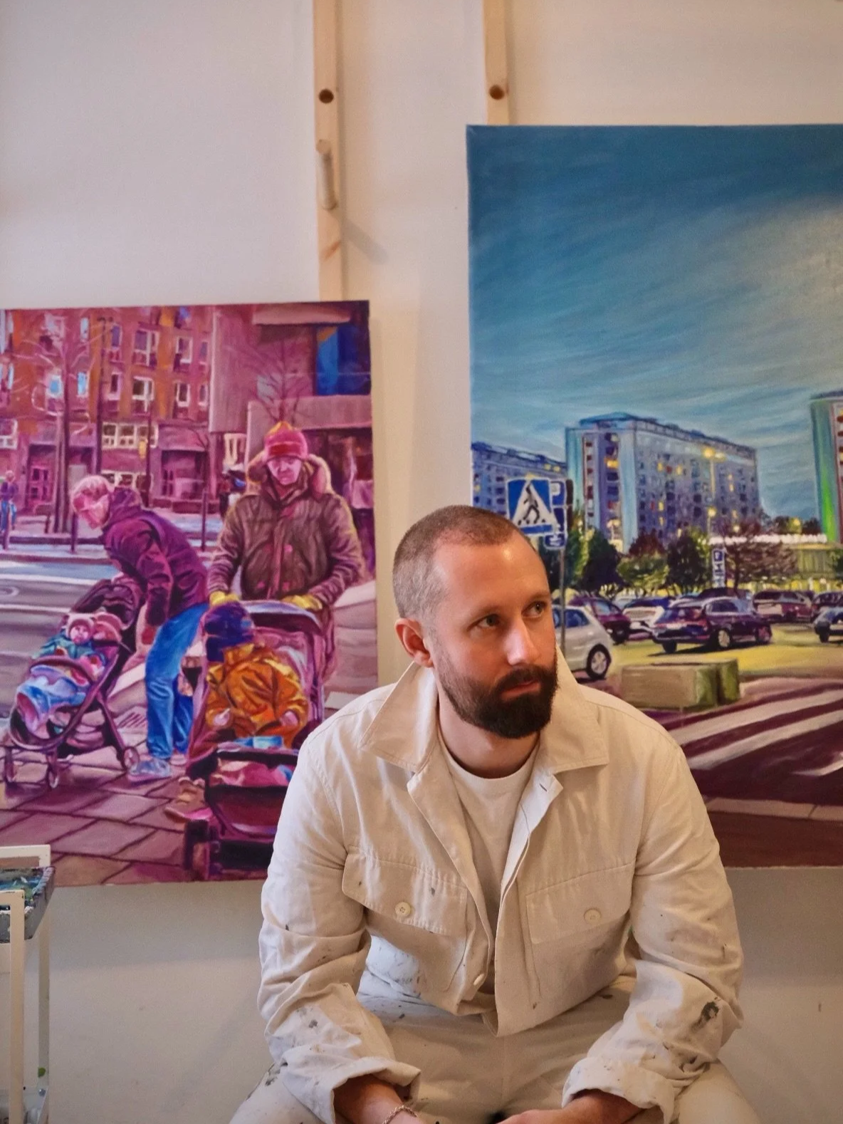 I’m an architect and painter based in Gothenburg, and my work explores how the contemporary city shapes emotional and psychological experience. With training in architecture from Chalmers University of Technology and the Politecnico di Torino, and in painting from Dômen Art School, I bring spatial thinking together with layered, tactile oil processes. I’m drawn to thresholds in the city - between public and restricted space, day and night, clarity and ambiguity - and use these moments to create images shaped by memory, tension, and reflection.